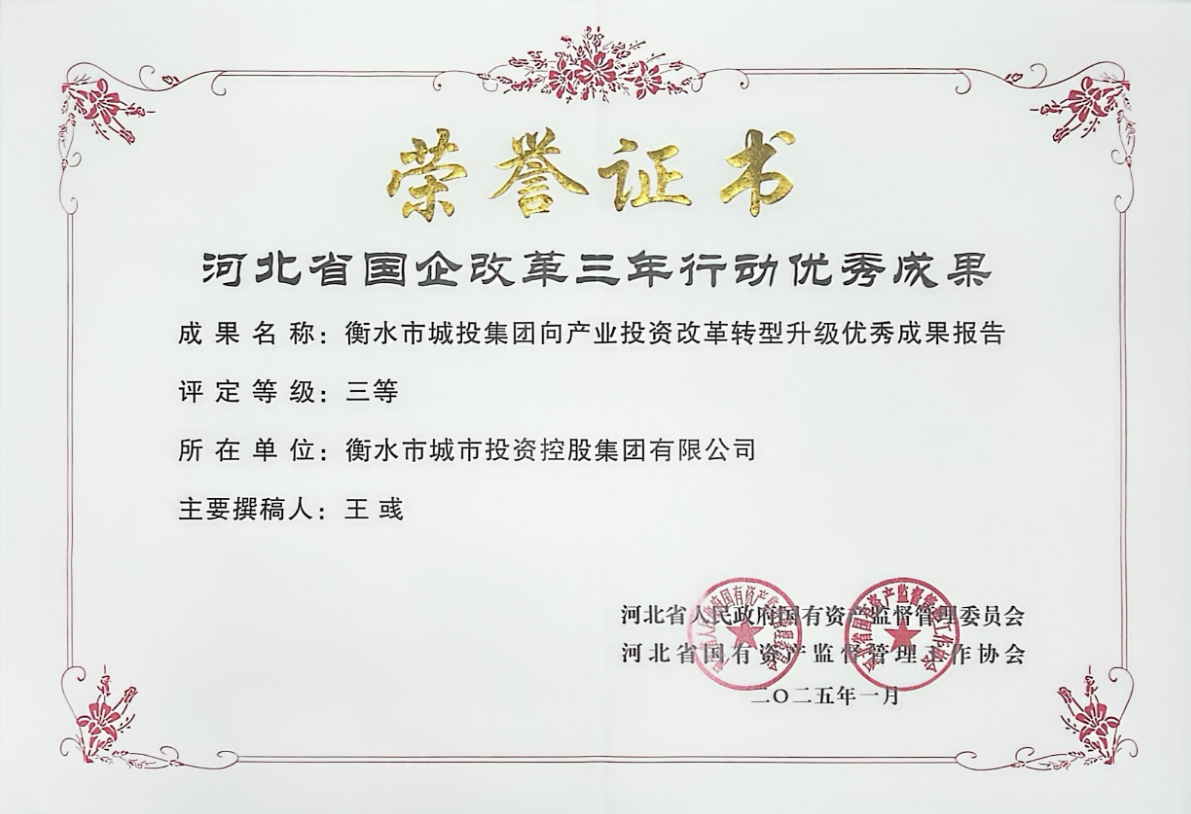 衡水市城市投資控股集團(tuán)有限公司榮獲河北省國(guó)企改革發(fā)展優(yōu)秀成果三等獎(jiǎng)