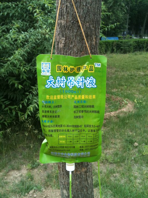 二、判斷樹勢,確定輸液對象 判斷大樹生長不良是因缺乏何種營養(yǎng)引起;然后對癥下藥。一般為促進移栽樹的細胞再生,生長前期使用的是氮肥,生長后期是磷、鉀肥,必要時加一些微肥。